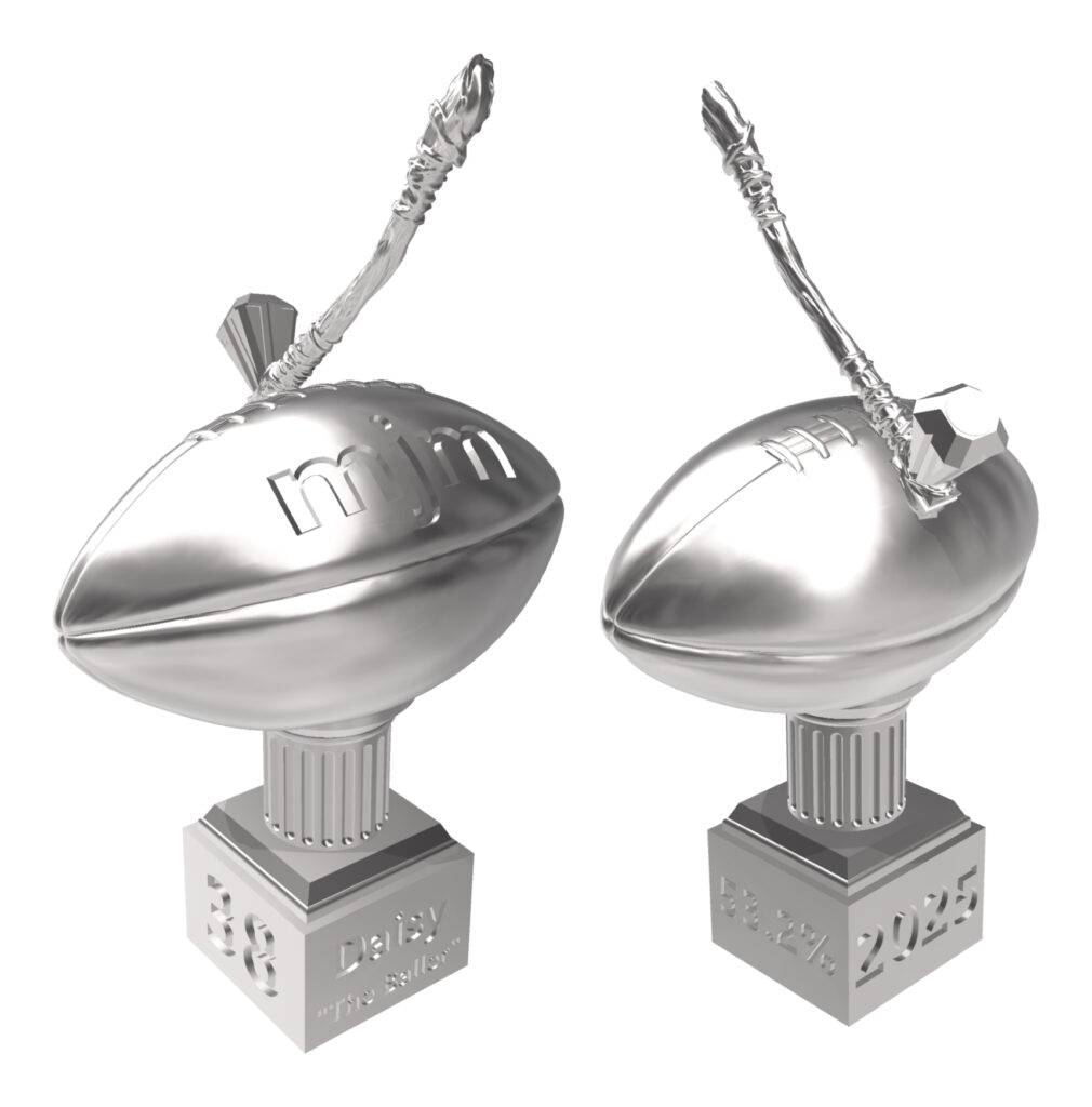 Daisy made 25 correct picks out of 47 for an overall 53.2% correct. While Zack’s overall correct pick percentage, 70%, was incredibly impressive, Daisy outperformed him 21 to 10 in the Champions Division and will receive the 2025 MJM Award for Excellence in Prognostication (as soon as we can coax it out of the SBBPA fab shop)!