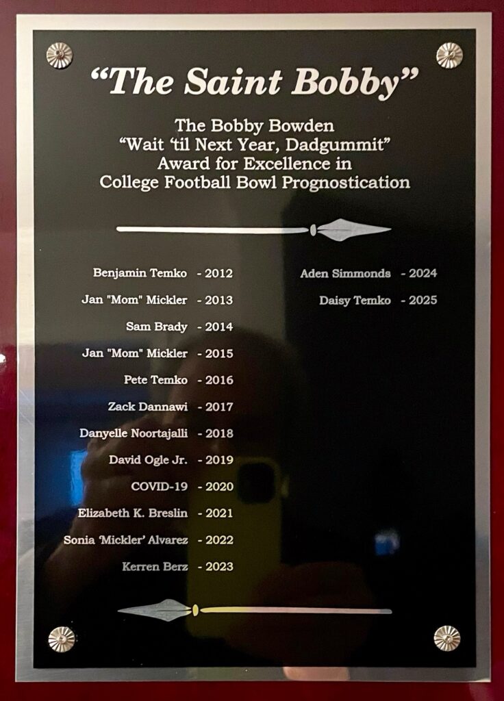 Well, let’s not let the stench of the NCAA and ESPN’s fecklessness ruin our moods as we anticipate this 14th SEASON of the SBBPA Bowl Pick’em Challenge! We’ve got a new champion to crown and another trophy to award!